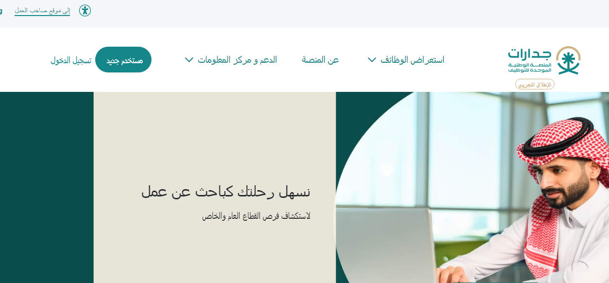 - قم بالولوج إلى الموقع الرسمي الإلكتروني جدارات.