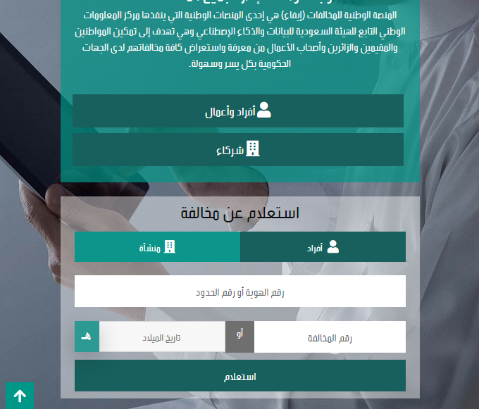 - ثم ادخل رقم المخالفة، أو تاريخ الميلاد.