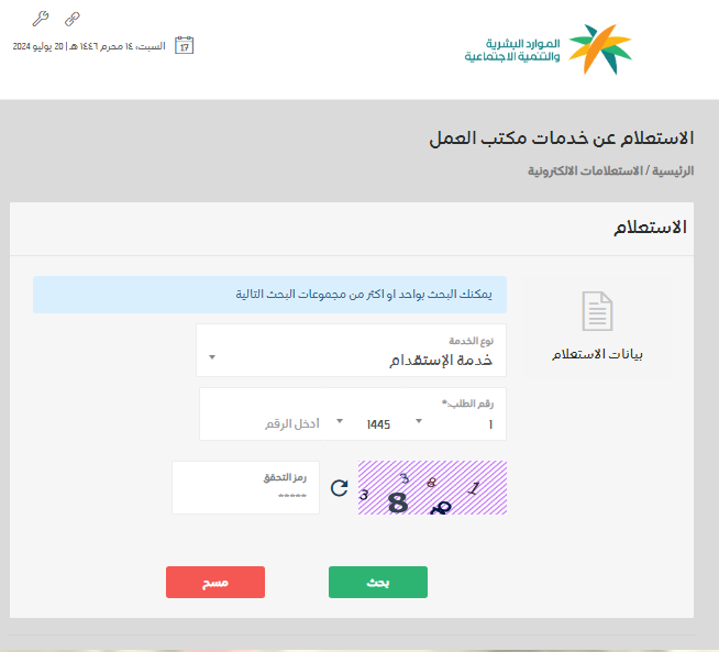 - ادخل إلى البوابة الرقمية الرسمية استعلامات الموارد البشرية والتنمية الاجتماعية.