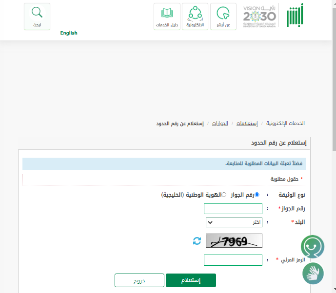 أبشر يوفر زمرة من الخدمات الرقمية يمكن الحصول عليها، ومن ضمنها خدمة التحقق من رقم الحدود التي يمكن استخدامها إلكترونيًا بكل سلاسة فقط عن طريق تطبيق خطوات الاستعلام عن رقم الحدود برقم الإقامة: