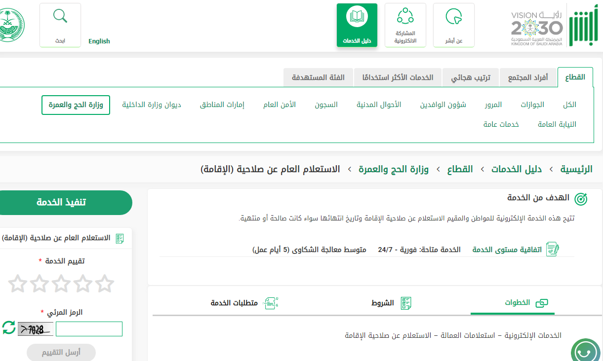 خطوات الاستعلام عن صلاحية الإقامة العامة