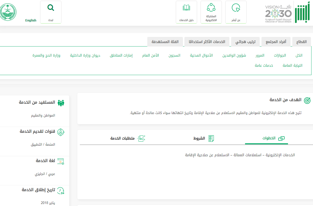 خطوات الاستعلام عن صلاحية الإقامة العامة