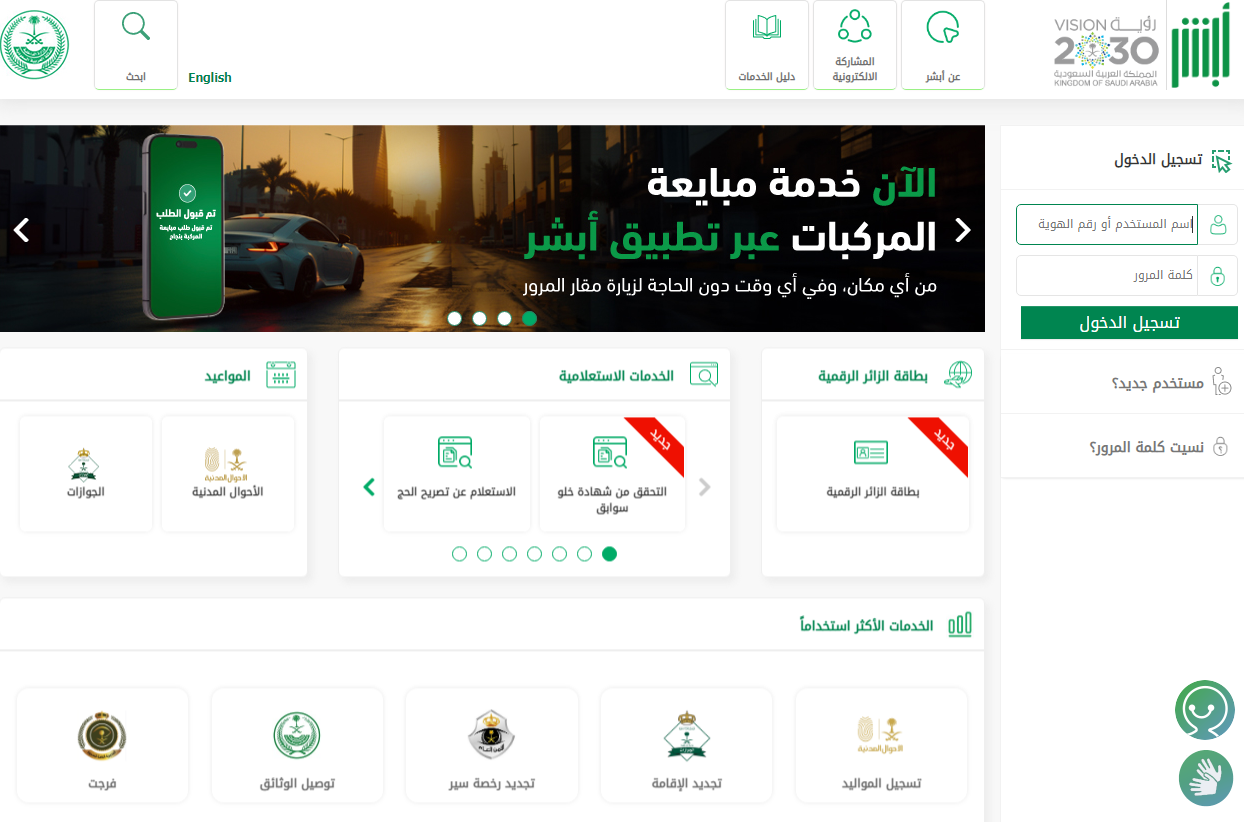 الدخول إلى منصة أبشر الرقمية.