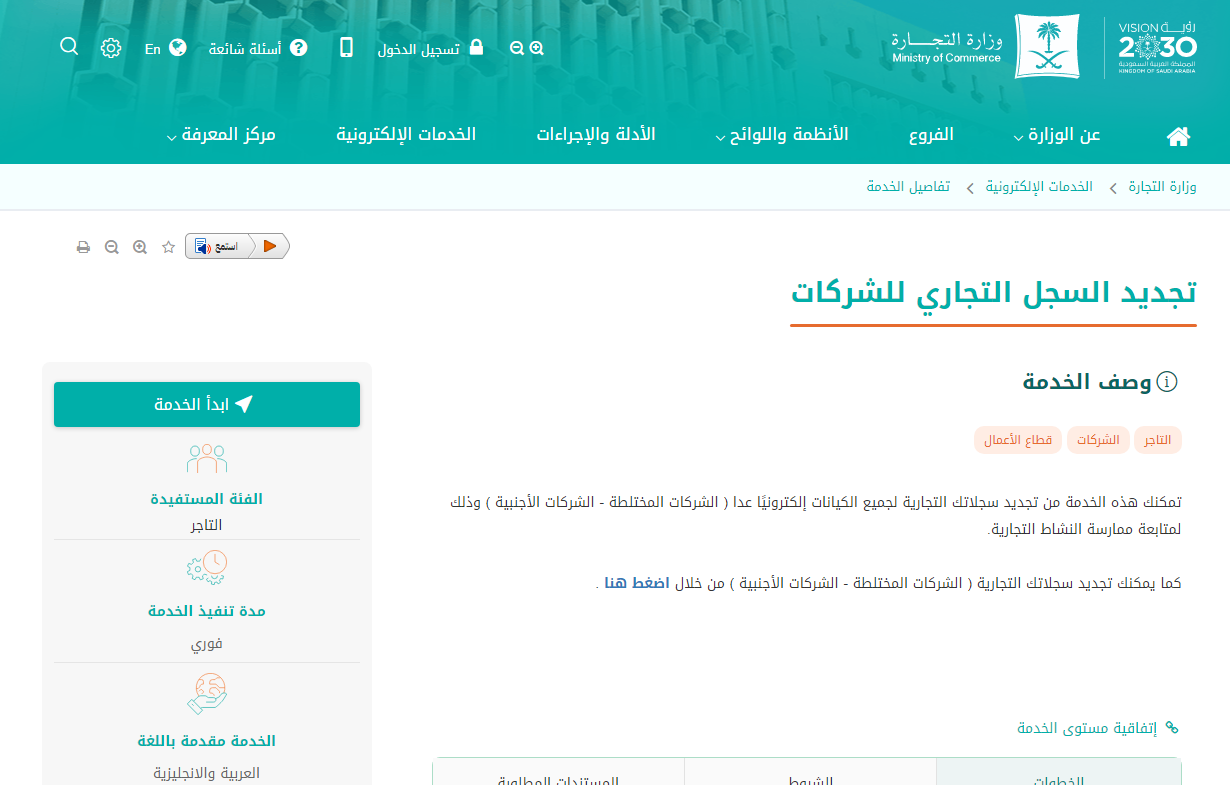 انتقل مباشرة إلى الموقع الرسمي لوزارة التجارة السعودية عن طريق النقر هنا.