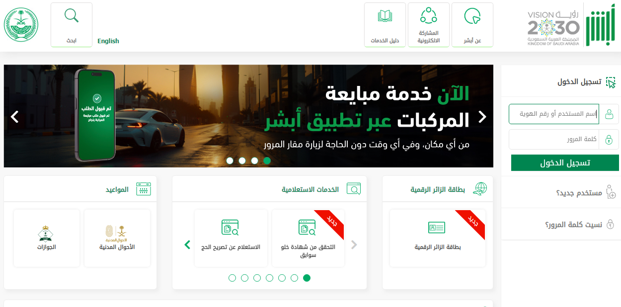 قم بزيارة الموقع الرسمي لــ "منصة أبشر".