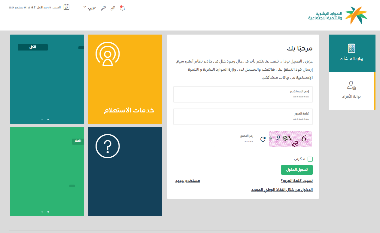 اختر بوابة الأفراد إذا كنت فردًا، أو بوابة المنشآت إذا كنت صاحب منشأة.