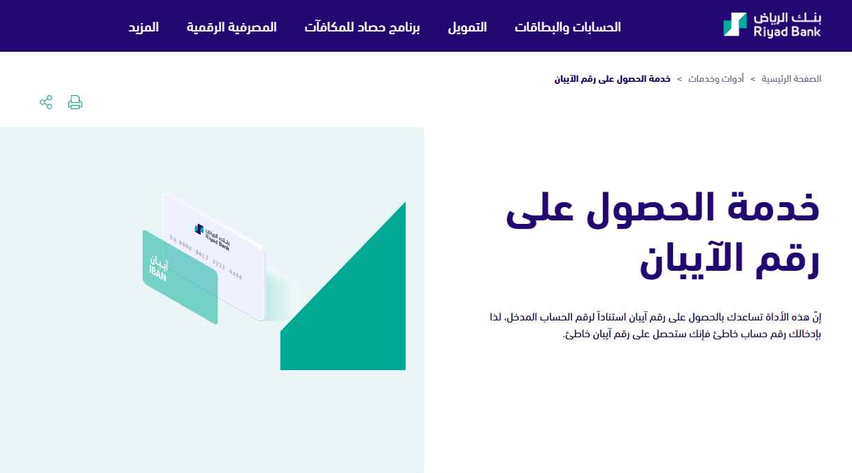 قم بزيارة موقع بنك الرياض على الإنترنت والانتقال إلى خدمة الحصول على رقم الآيبان.