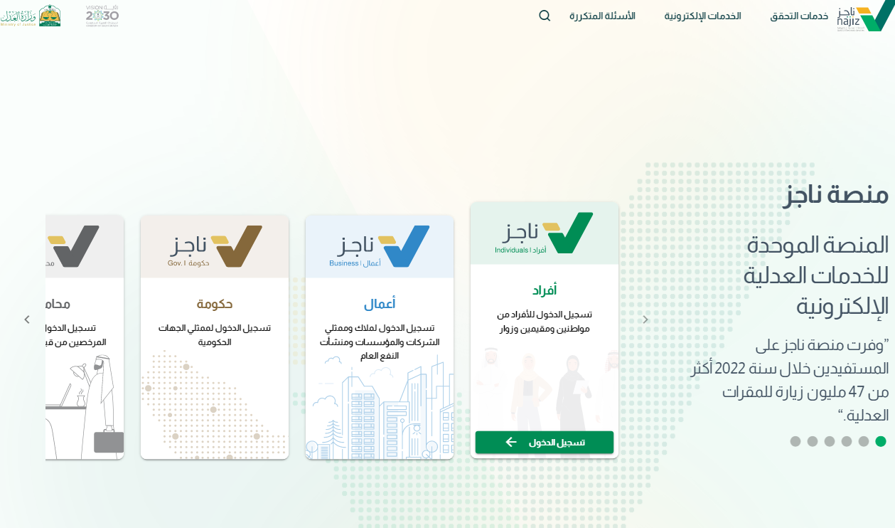 ابدأ بتسجيل الدخول إلى حسابك الشخصي في بوابة ناجز التابعة لوزارة العدل.