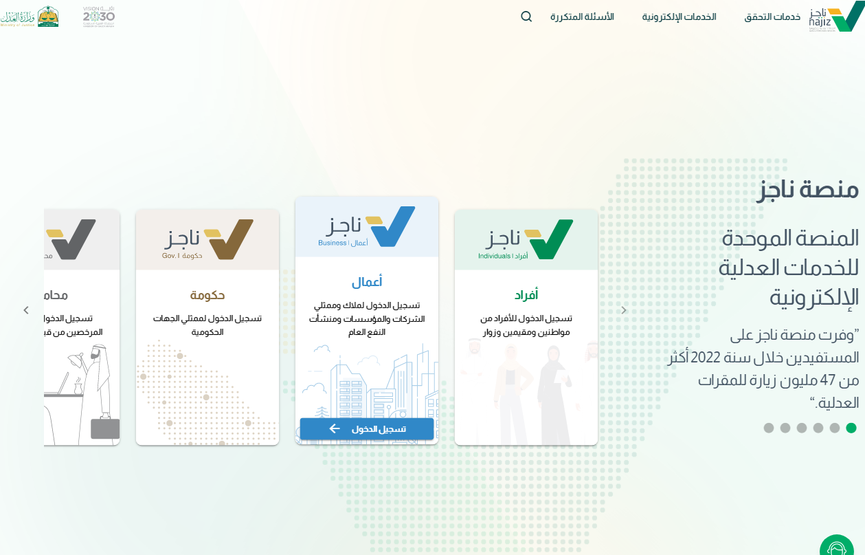 تسجيل الدخول إلى بوابة ناجز باستخدام حساب النفاذ الوطني من هنا.
