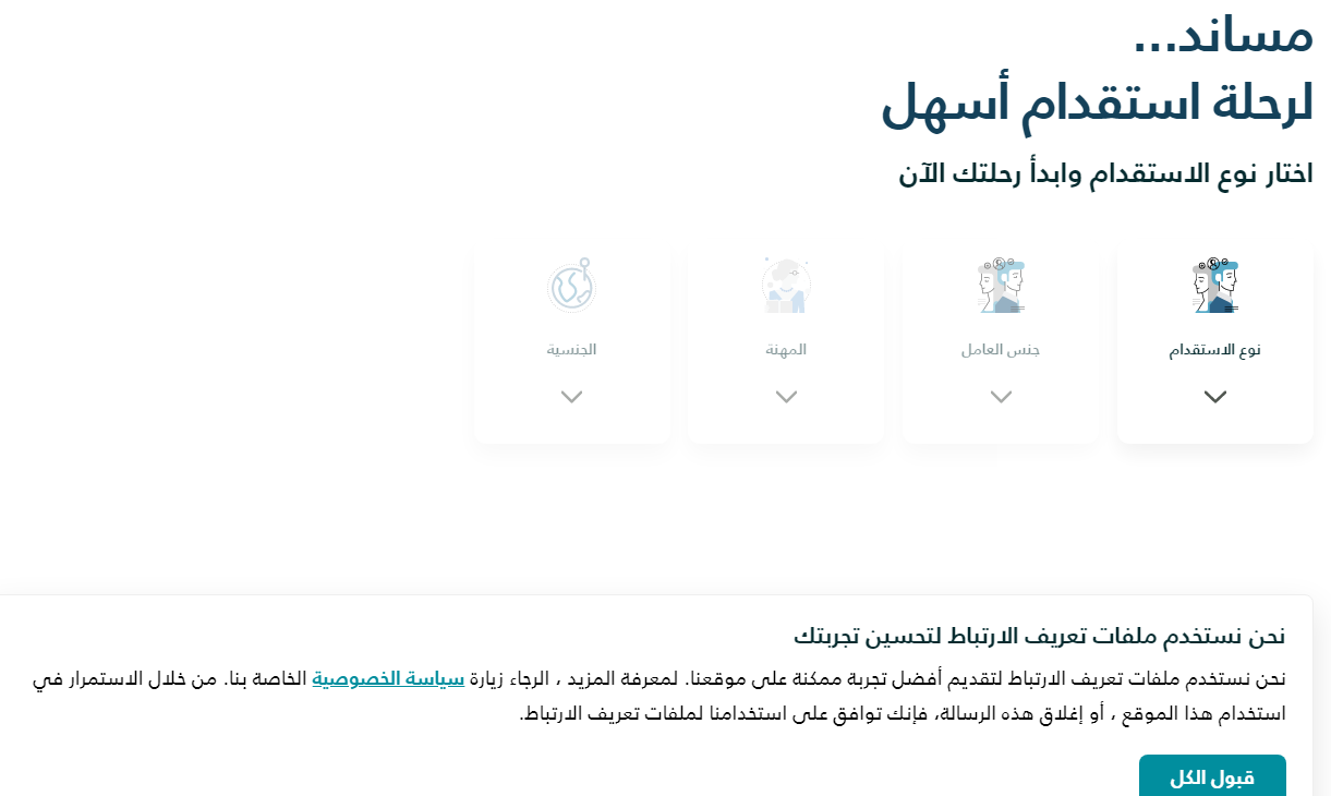 في البداية عليك التوجه إلى الموقع الإلكتروني الرسمي الخاص بمنصة مساند من خلال الضغط على هذا الرابط.