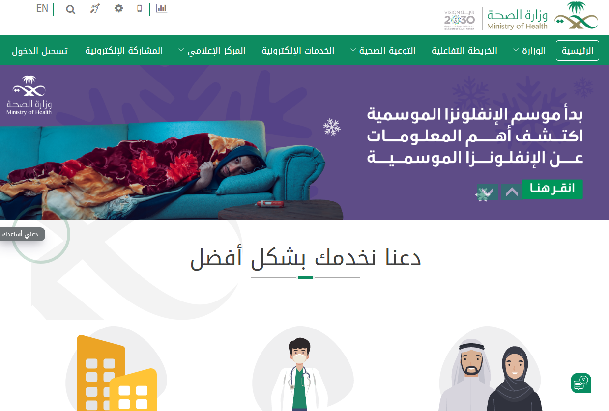 قم بزيارة الموقع الإلكتروني لوزارة الصحة السعودية.