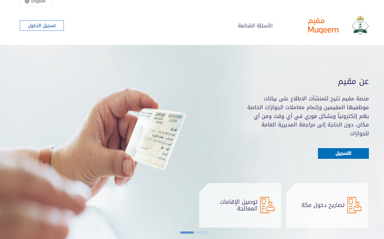 ابدأ بزيارة موقع مقيم الإلكتروني الرسمي.