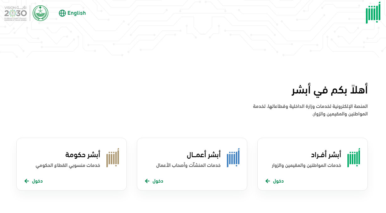 زيارة الموقع الرسمي لمنصة أبشر من هنـــــا.