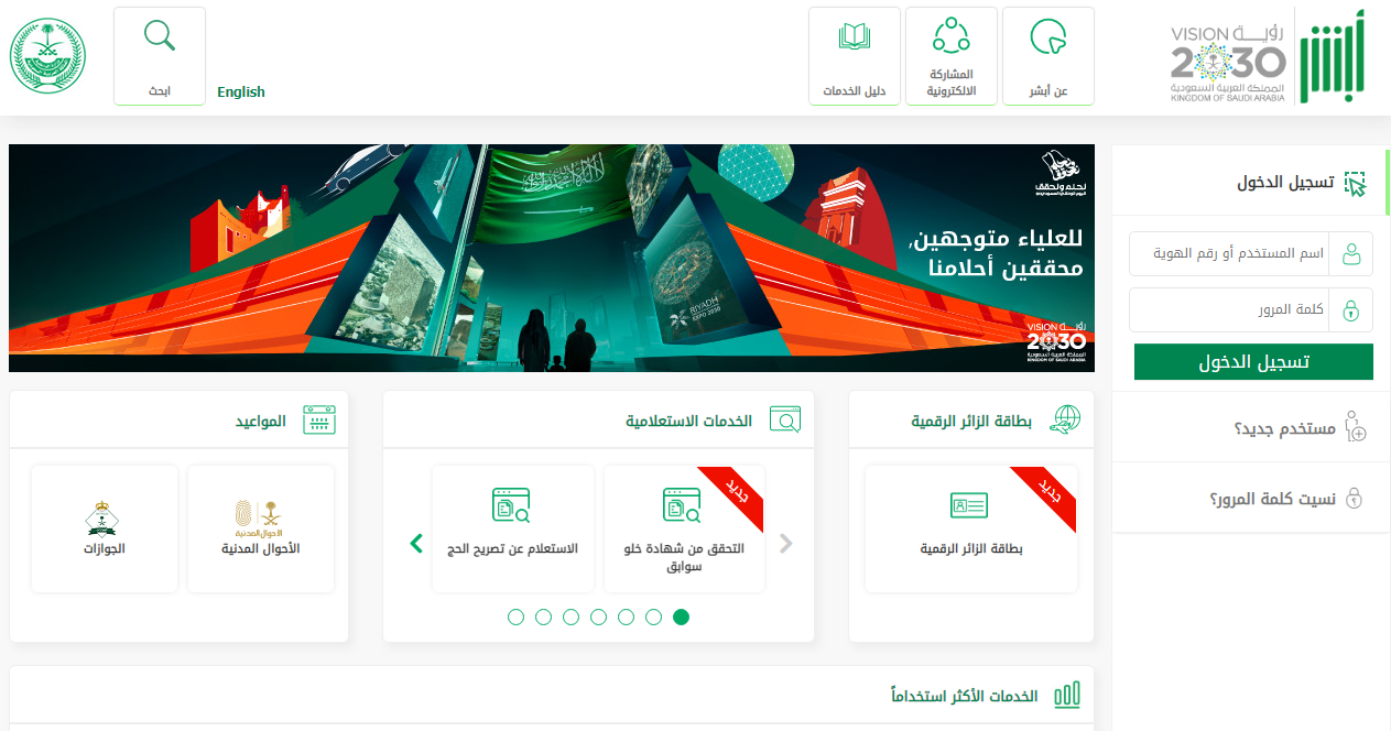 تسجيل الدخول إلى موقع أبشر الرسمي من "هنـــــــــــــــــــــــــــــا".