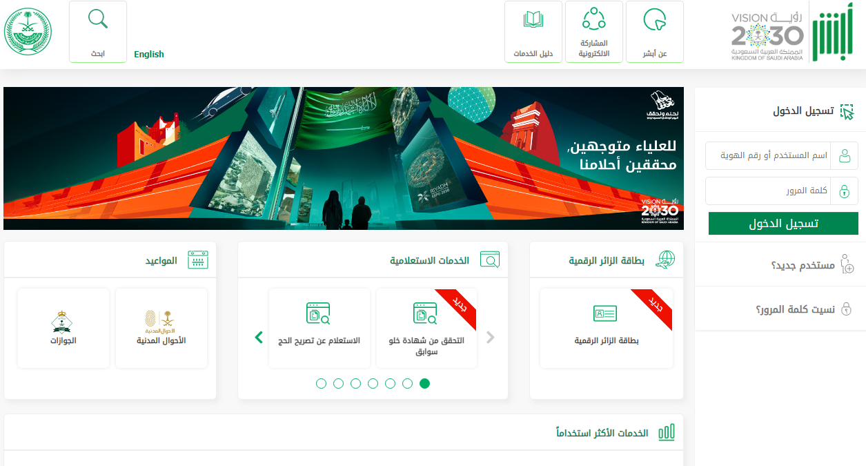 كما تستطيع تسجيل دخولك من خلال بوابة النفاذ الوطني الموحد.