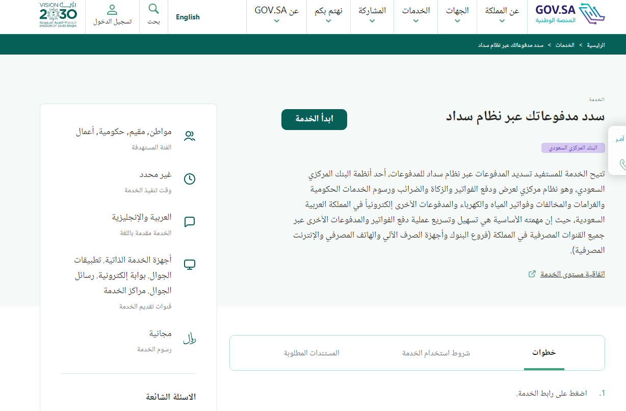 يمكنك الدخول إلى خدمة سداد الإلكترونية من هنـــــــــــــــــــــــــــــــــــــــا.