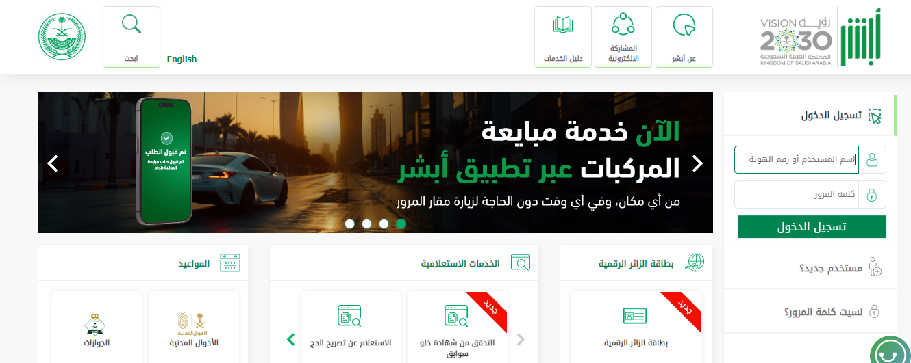 قم بالذهاب إلى الموقع الخاص بمنصة أبشر.