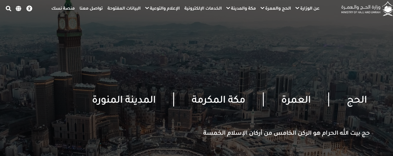 قم بالدخول إلى الموقع الإلكتروني الرسمي الخاص بوزارة الحج والعمرة.