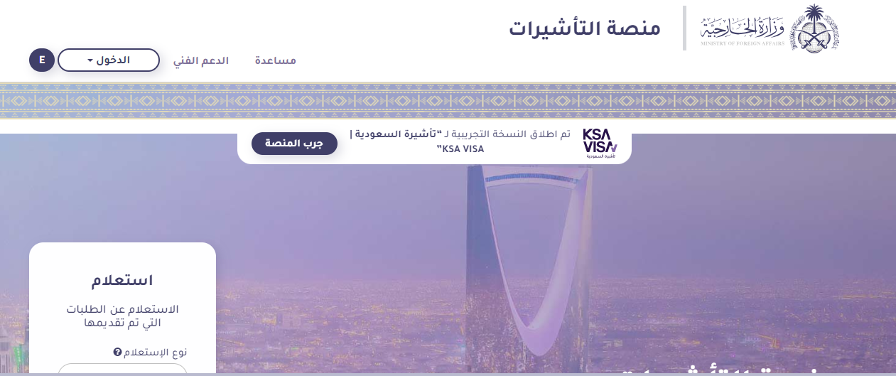 قم بالدخول إلى الموقع الإلكتروني الخاص بخدمة التأشيرات الإلكترونية.