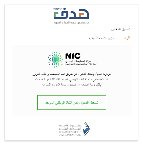 حدد حقل التسجيل بواسطة النفاذ الوطني الموحد.