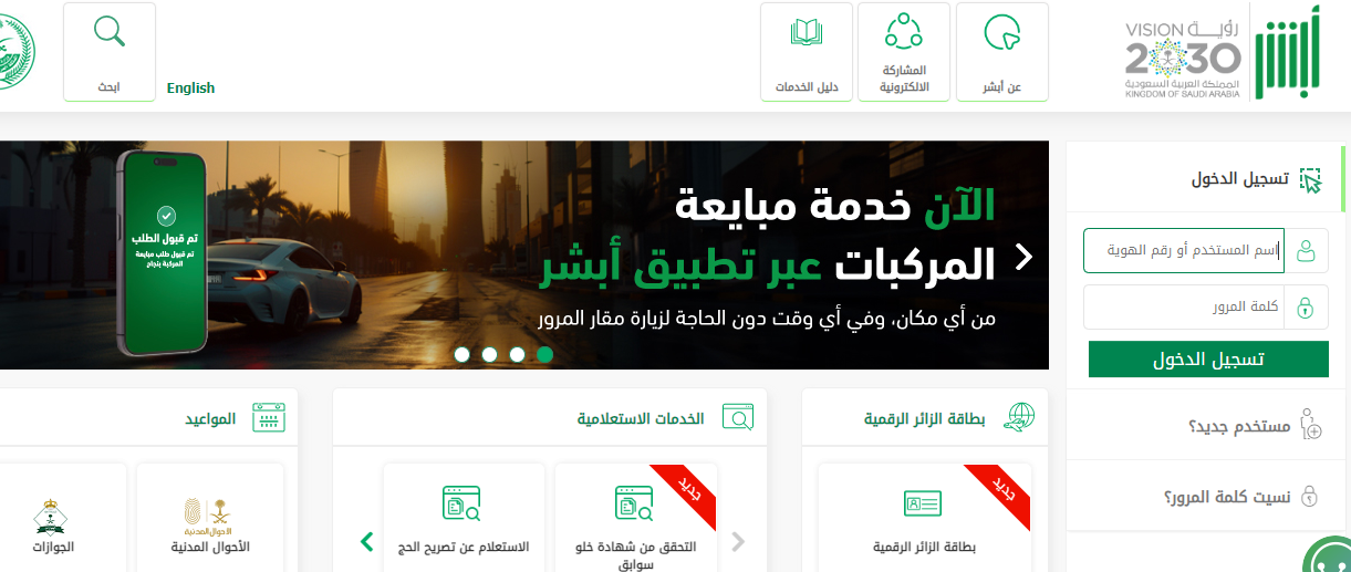 تتوفر خدمة تجديد رخصة القيادة عبر منصة أبشر الإلكترونية لتسهيل عملية تجديد رخصة القيادة على المواطن وتوفير الوقت والجهد، يجب اتباع الخطوات التالية: