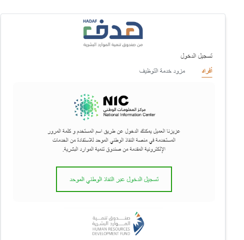 تسجيل الدخول على المنصة من خلال النفاذ الوطني الموحد.