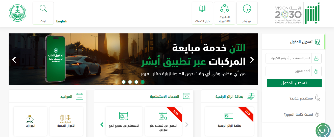 توجه إلى موقع أبشر الإلكتروني عبر هذا "الرابـــــــــــــــــــــط ".