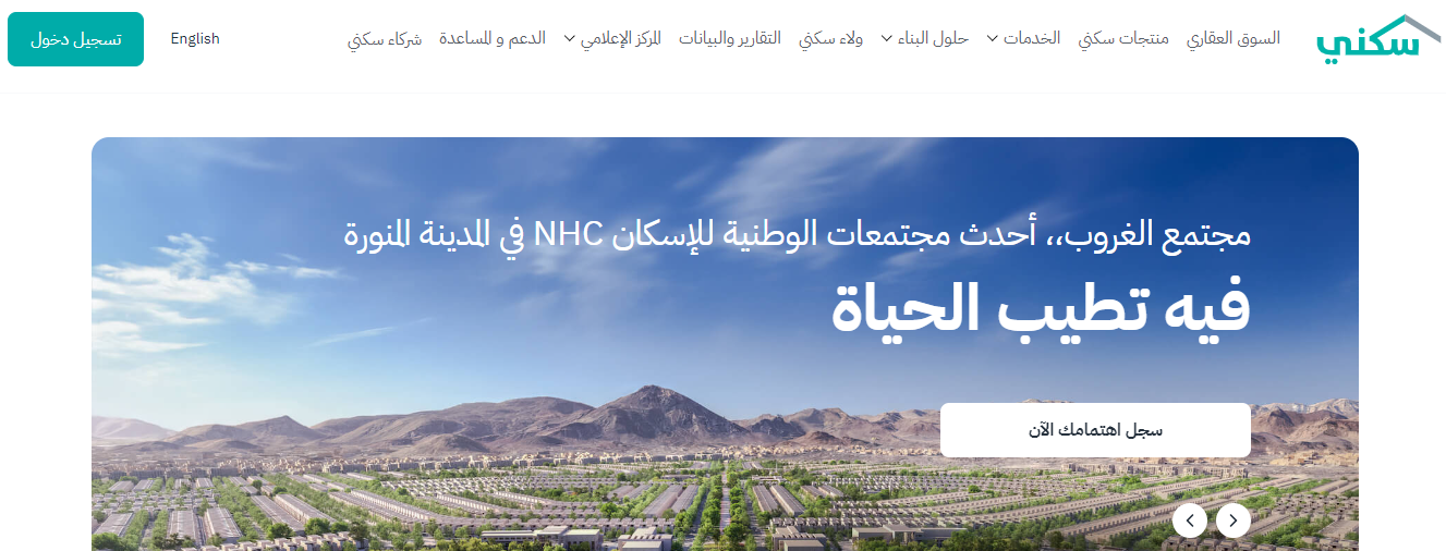 قم بالدخول إلى الموقع الخاص بمنصة سكني.