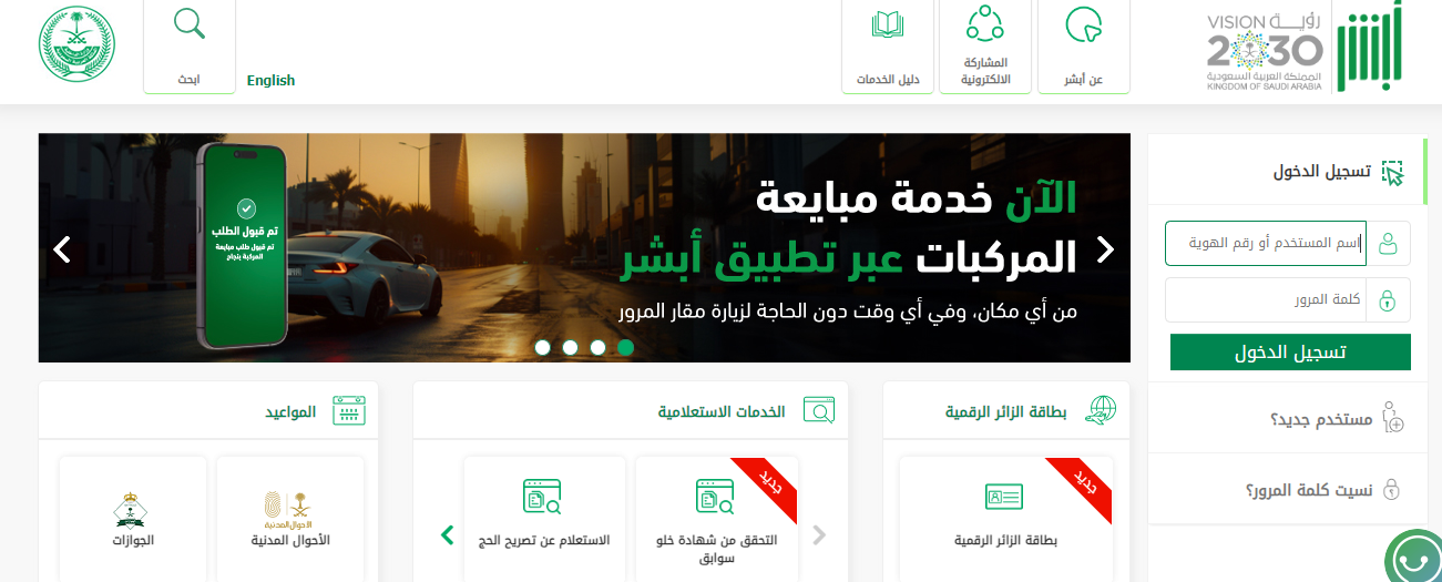 يجب أن يكون لك حساب على منصة أبشر الرقمية.