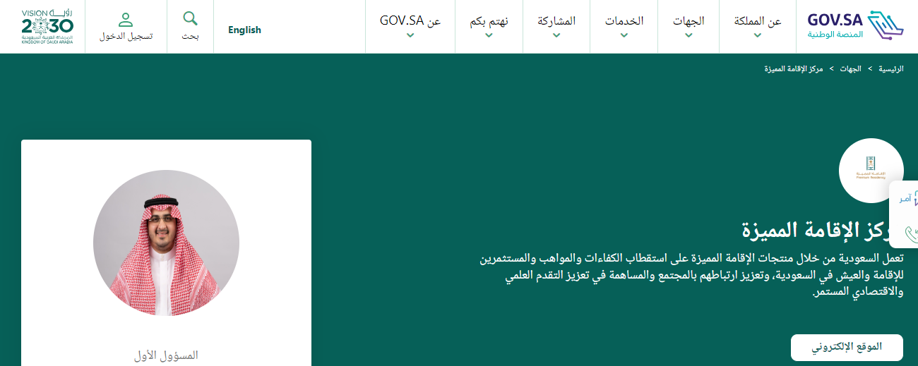 زيارة خدمة الإقامة المميزة عبر المنصة الوطنية الموحدة من خلال الرابط.