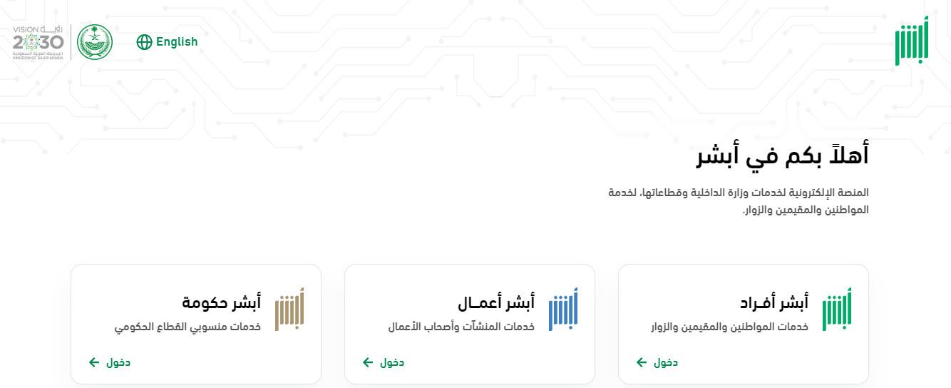 الدخول إلى موقع أبشر الإلكتروني .