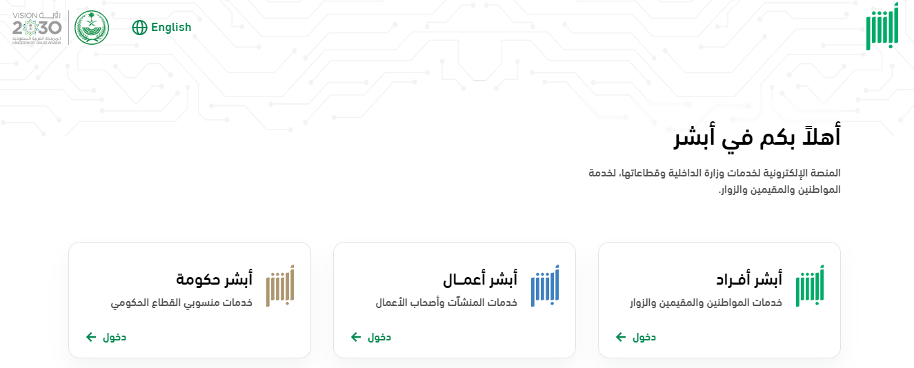 ادخل إلى موقع أبشر الإلكتروني من خلال هذا الرابط.