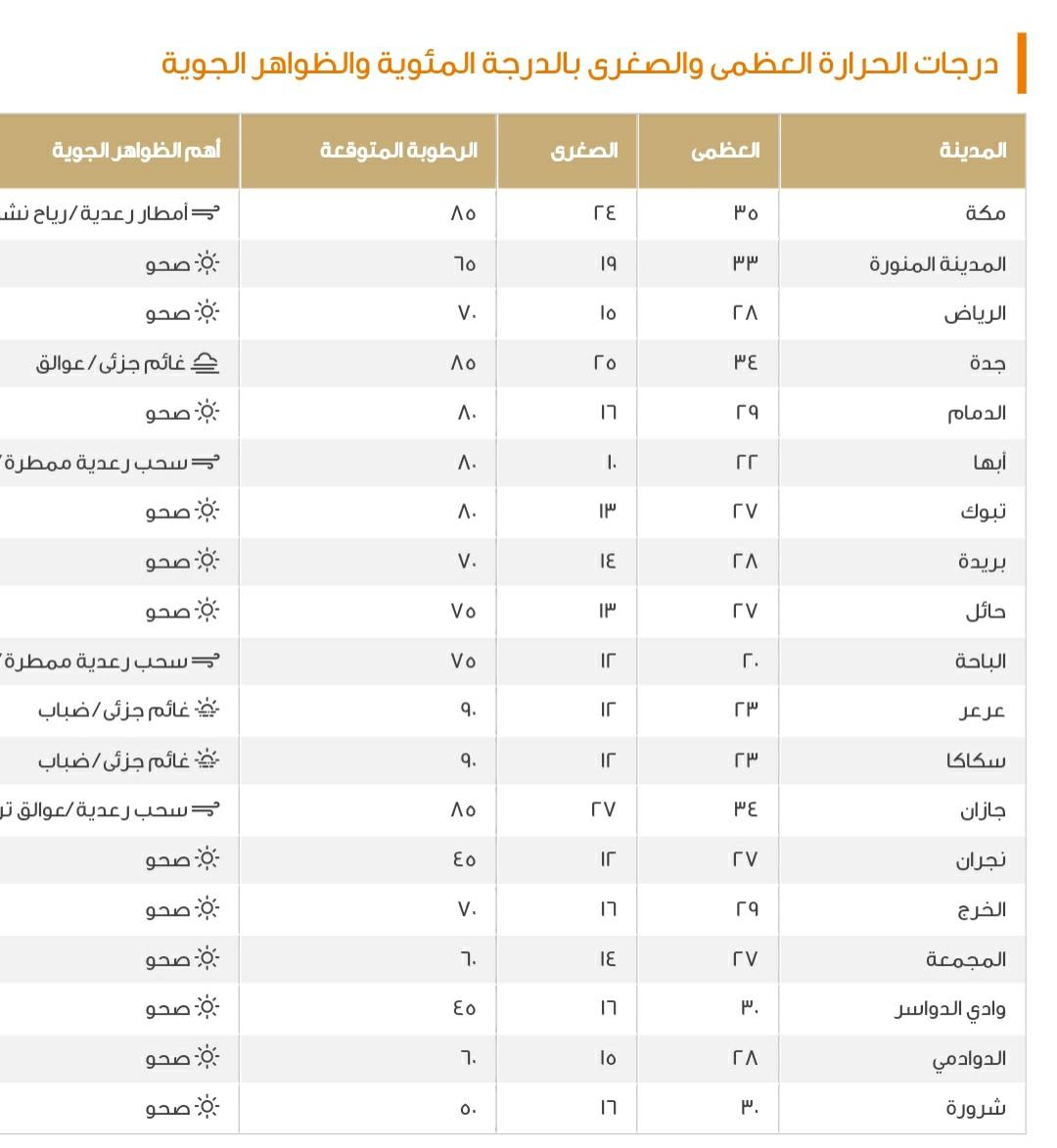 وفيما هو متعلق بدرجات الحرارة فقد جاء توضيحها من خلال بيان كما يلي: