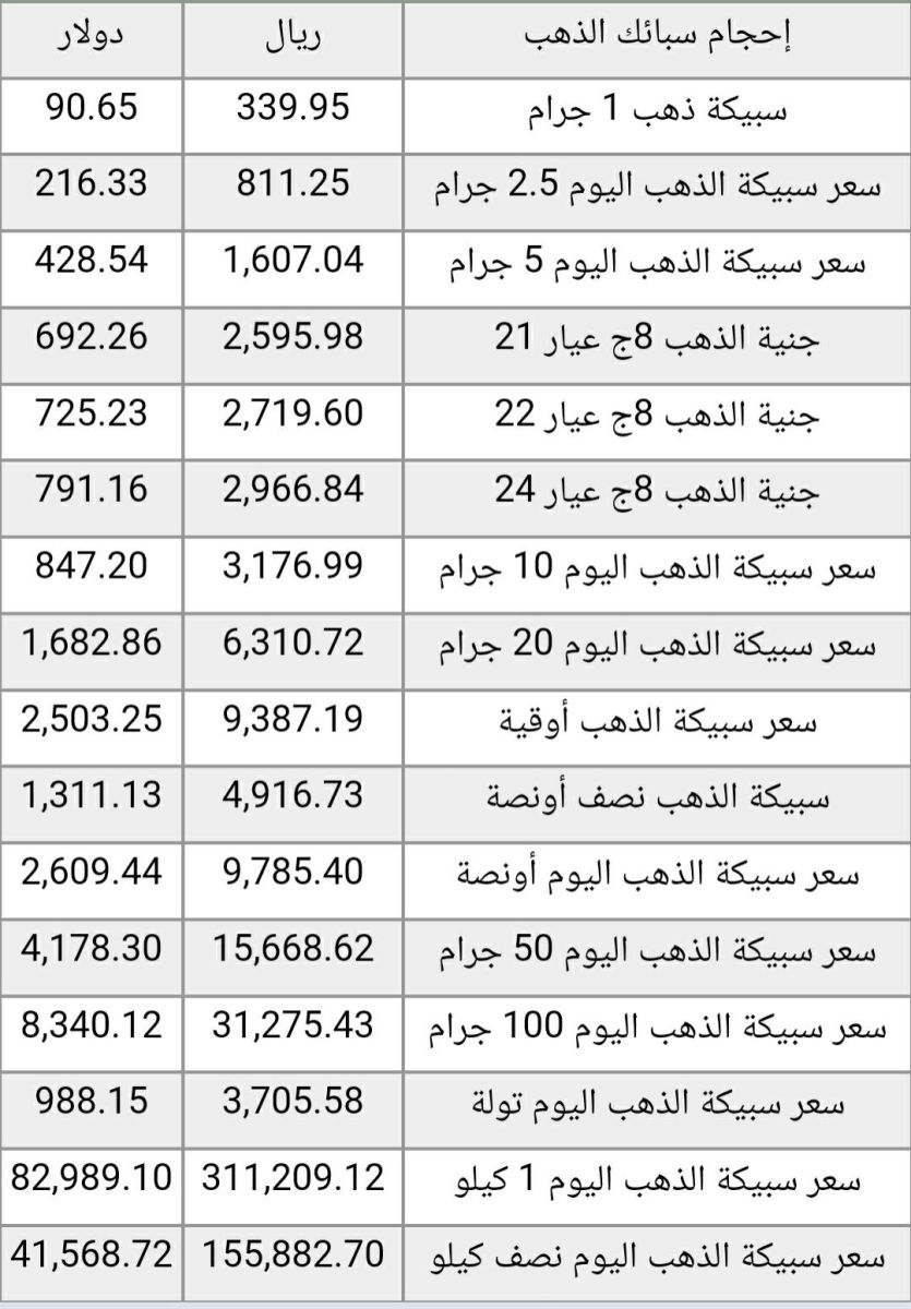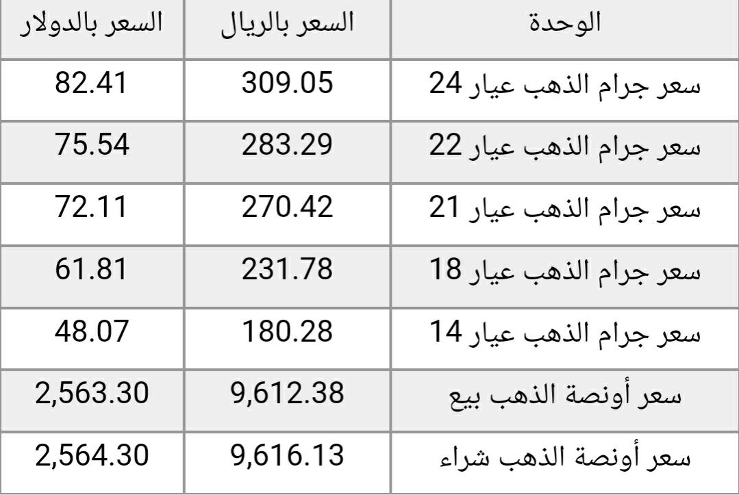 هذا وقد تبين أن أسعار الذهب في المملكة قد زادت بمقدار حوالي ١ ريال سعودي، وهذا ما نوضحه عبر الجدول الآتي: