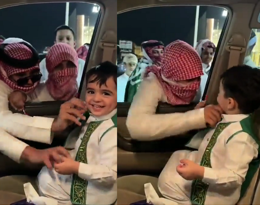 تداول رواد التواصل الاجتماعي فيديو طريف لمجموعة من الشباب يداعبون طفل صغير في احتفالات اليوم الوطني السعودي الـ 93.