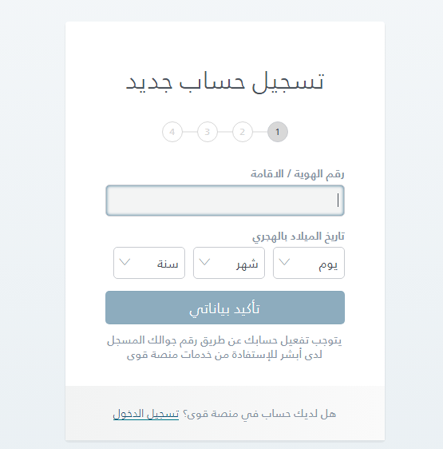 خطوات إنشاء حساب منصة قوى يمكن أن نتعرف عليها من خلال النقاط التالية: