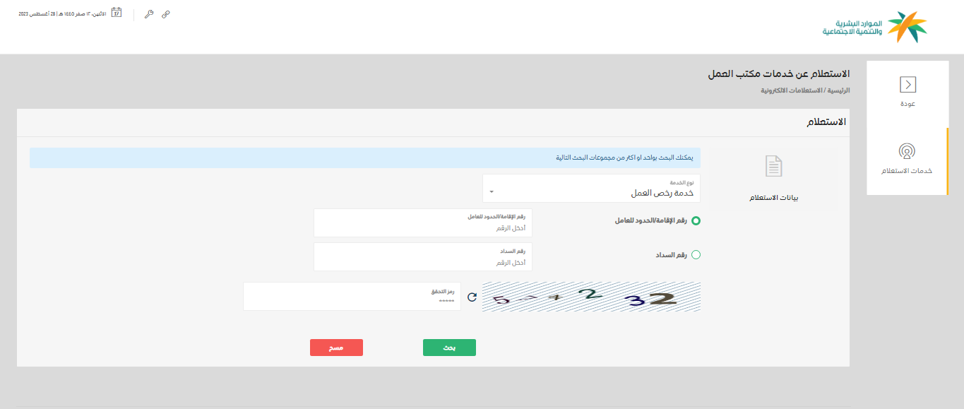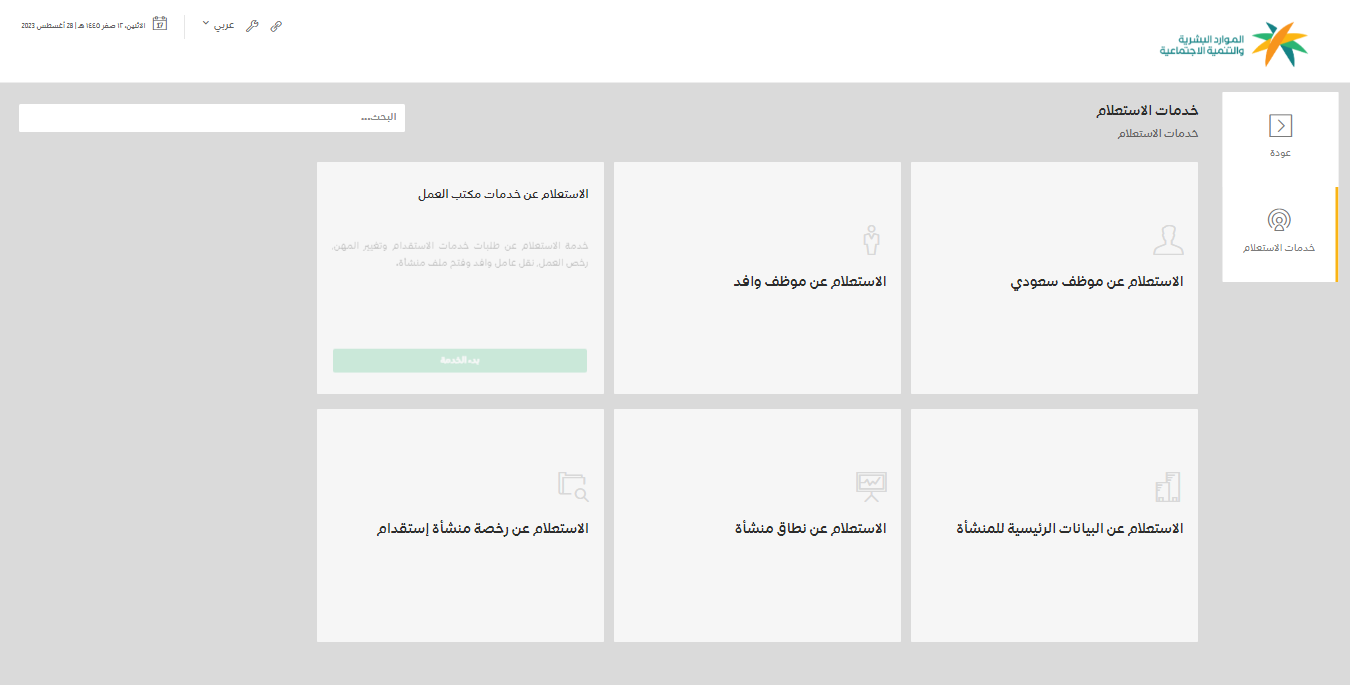 - اختر من هذه القائمة "الاستعلام عن خدمات مكتب العمل".