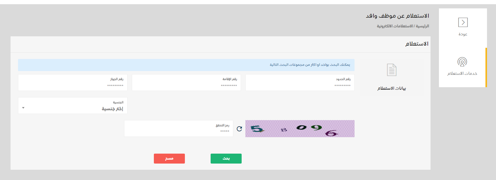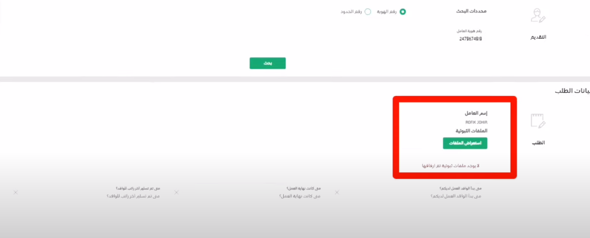 خدمة الاستعلام عن موظف وافد
