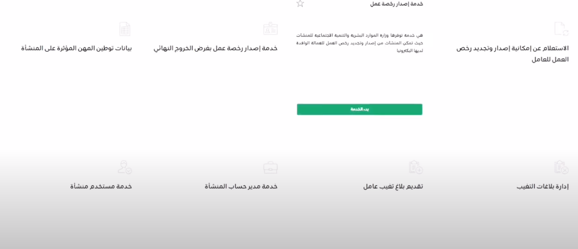 - اختر نوع الخدمة وهي "خدمة رخص العمل".