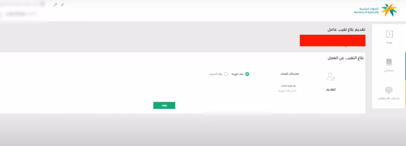 - قم بالنقر على خدمة "تقديم بلاغ تغيب عامل".