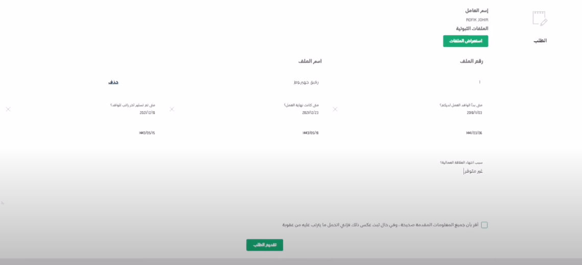 - قمّ بإرفاق كافة الملفات التي تثبت تغيب العامل.