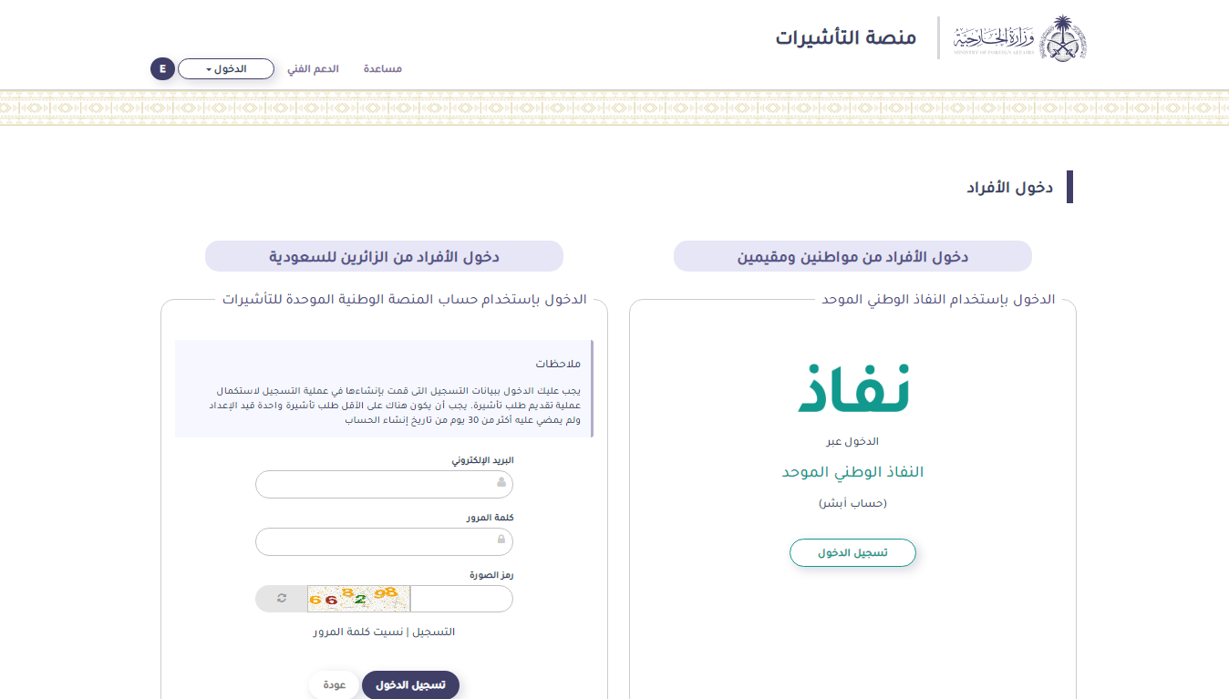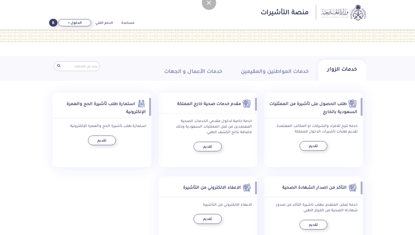 - اذهب مباشرةً إلى الموقع الرسمي الإلكتروني لمنصة التأشيرات الإلكترونية.