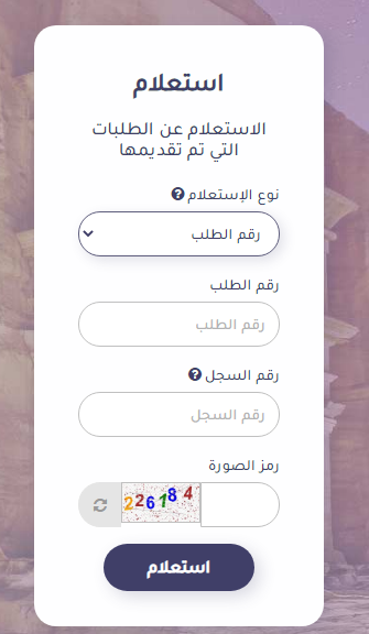 - قم بالدخول إلى خدمة البحث عن طلب مقدمة.