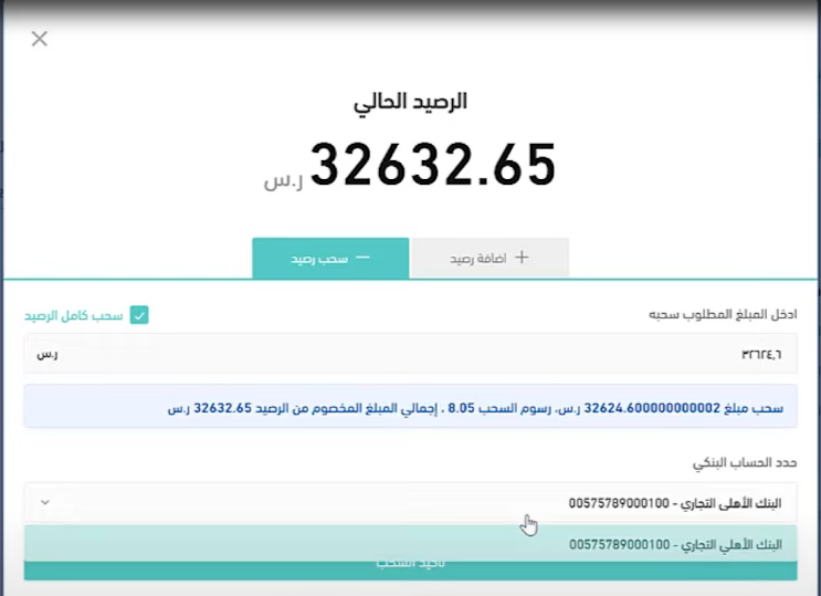 - حدد قيمة المبلغ المراد سحبه، وبإمكانك سحب كامل المبلغ.
