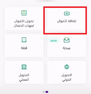 - من الصفحة الرئيسية، قم بالضغط على علامة التبويب "إضافة أموال".