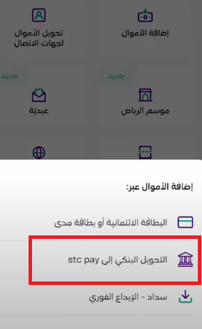- اضغط على علامة التبويب "التحويل البنكي إلى stc pay".
