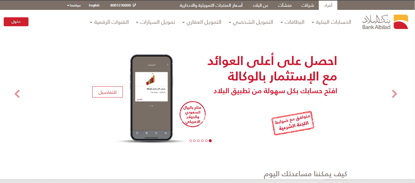 - اذهب مباشرةً إلى الموقع الرسمي الإلكتروني لبنك البلاد.