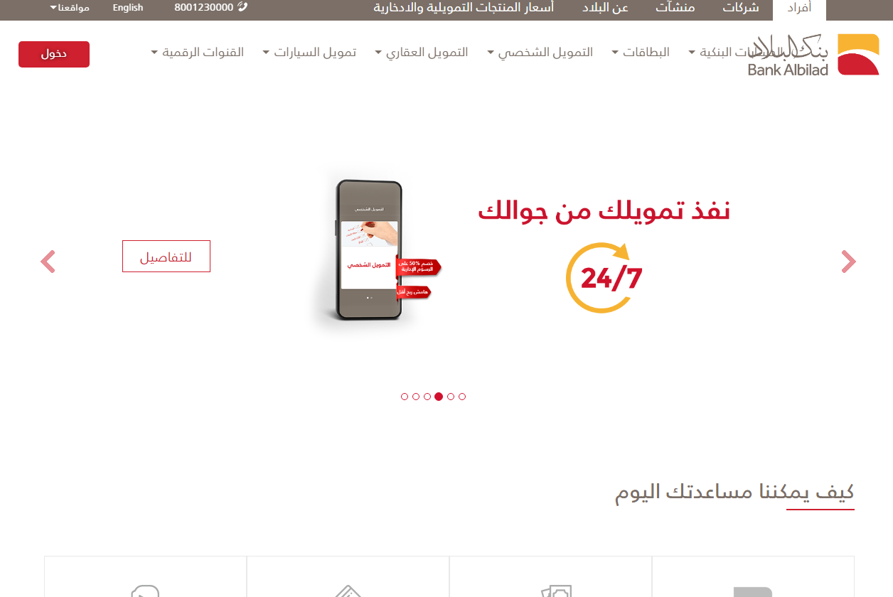 - اختيار التمويل الشخصي والتي تظهر الصفحة الرئيسية.