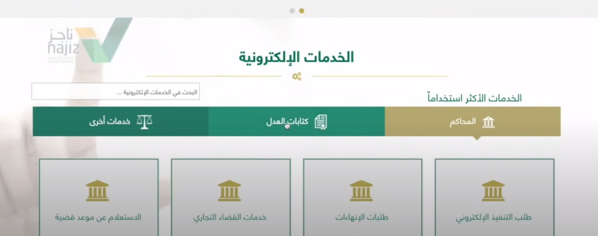 - قم بالدخول إلى منصة ناجز الرسمية التابعة لوزارة العدل.
