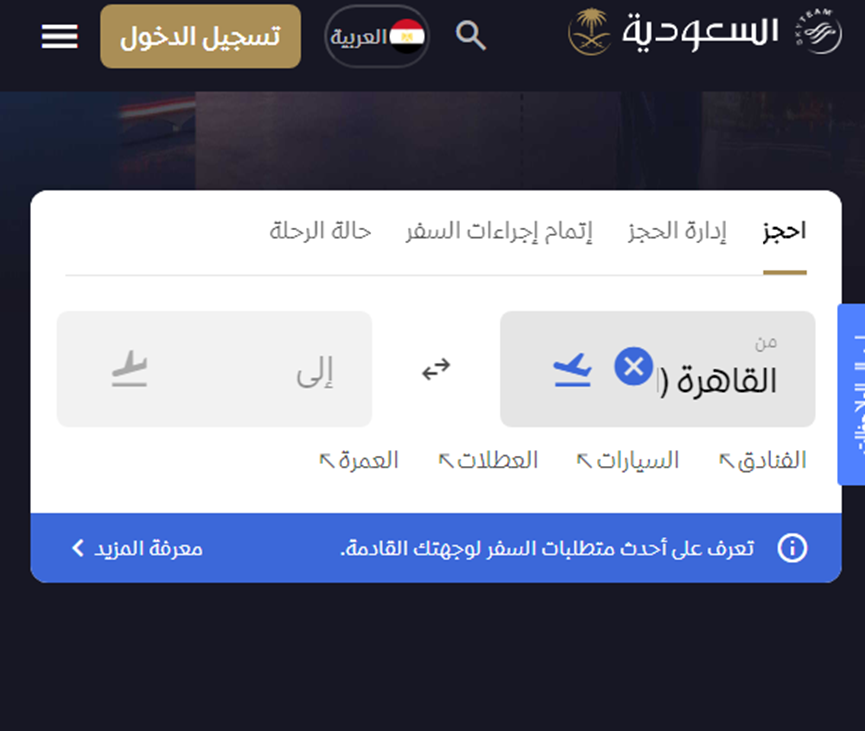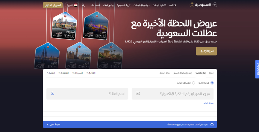 أتاحت الخطوط السعودية إمكانية حجز تذاكر الطيران أون لاين عن طريق القيام بالتالي: